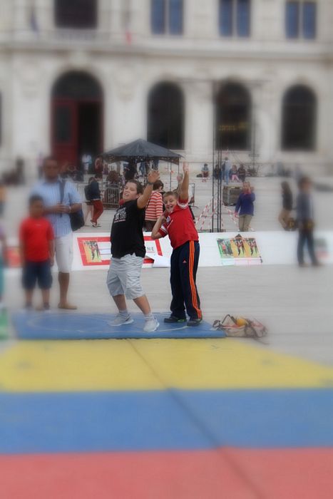 Les uns ont visité le salon des arts visuels à la Chapelle St Louis, pendant que les autres s'initiaient à l'athlétisme sur la place Leclerc, puis tous se sont retrouvés sur la place afin de participer aux différents ateliers proposés (saut en longueur, saut en hauteur, vitesse, lancer...)