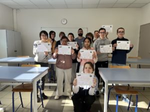 Le vendredi 24 avril, les élèves de première année de CAP PPB ont reçu les diplômes et les récompenses qu’ils ont gagnés en ayant participé au concours les sciences au cœur du métier ! Ils ont obtenu le prix de l’académie de Poitiers ainsi que le prix de la réalisation. Bravo à eux !!
